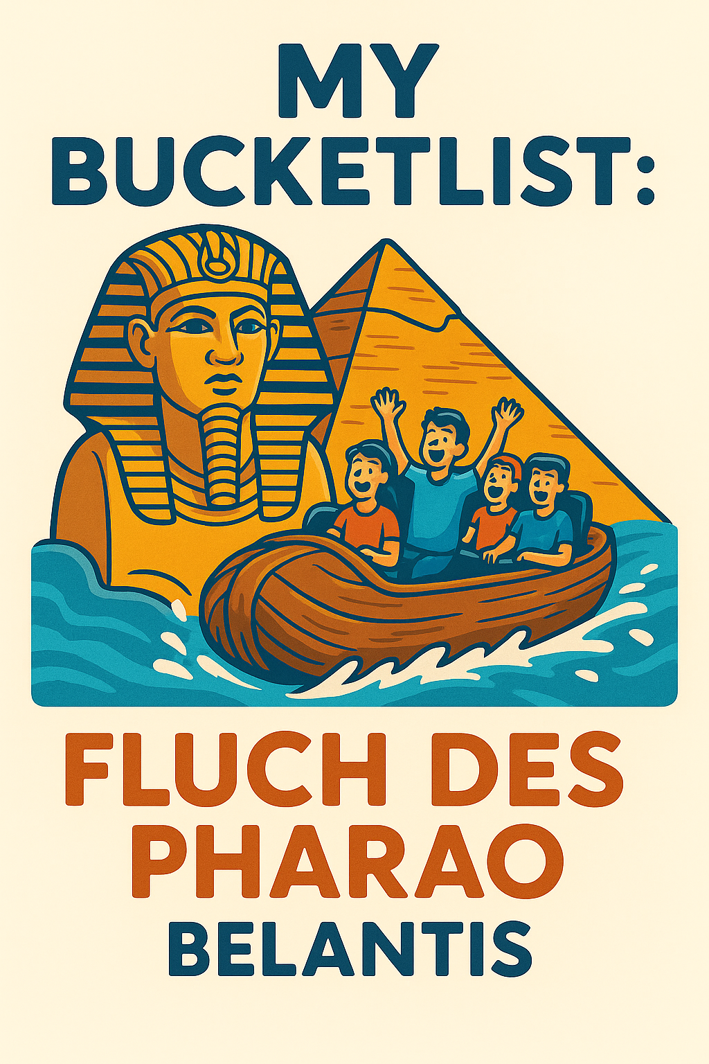 Der Fluch des Pharao ist Log Flume von Hafema. Das außergewöhnliche dabei sind die Boote. Es sind nämlich Schlauchboote. Auch die Abfahrt aus der Pyramide heraus ist hoch und steil. Außerdem gibt es auch den typischen Strudel der sonst nur bei Rapid River anzutreffen ist.